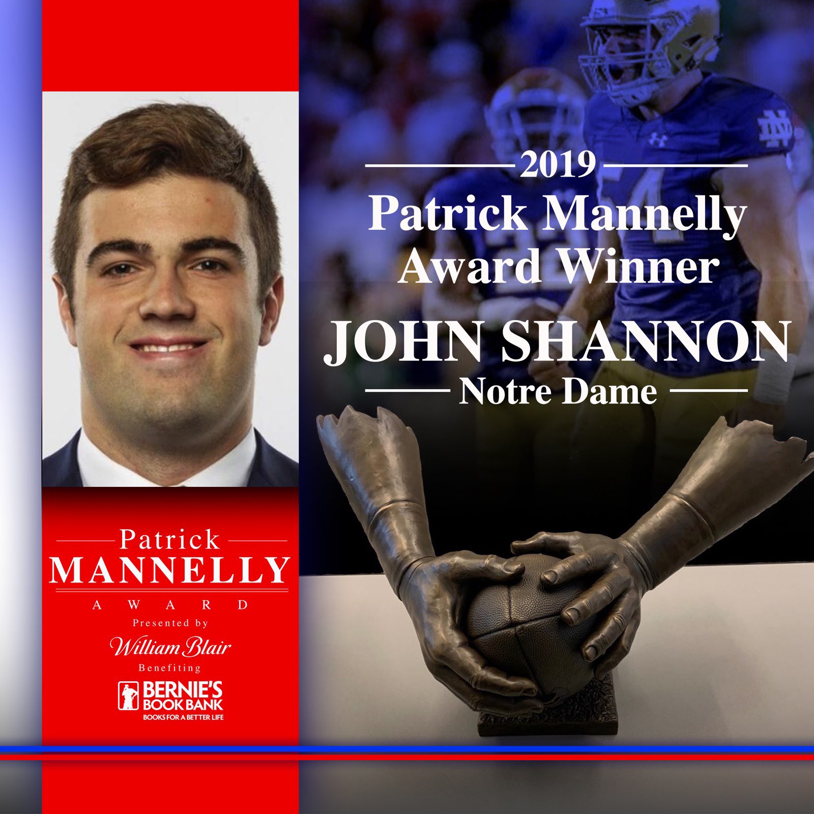 Notre Dame senior long snapper John Shannon was announced as the winner of the inaugural Patrick Mannelly Award on Saturday. Liam McCullough (Ohio State) and Steven Wirtel (Iowa State) were the other finalists.